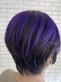 トップにブリーチでカラーミューズでヴァイオレットに染めてます。ベースもブラックヴァイオレットでかっこよくカラーしてます。