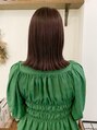 ツヤと鮮やかさを出したい時のカラーリングはピンクレッドブラウンがおすすめ!鎖骨レングスの外ハネスタイルとの相性もバッチリです!