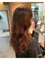 ナチュラルなウェーブパーマ。伸びても気にならないようにグラデーションのオレンジカラー。