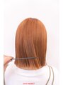 ケアブリーチを使用してのオレンジカラーはベージュをほんのり加えて柔らかいオレンジカラーに。