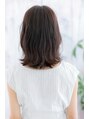 黒髪でクラシカルな印象にしつつ、肩のラインで揺らめく外ハネカールでカジュアルさもプラスしたくびれミディ。トップにふわっとボリュームを出してスタイルアップ効果。サイドの毛流れで輪郭カバーして小顔見せ。大人かわいいスタイルで男女問わず好感度UP。