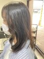 元がミディアムの長さがあり、毛先を数cm整えて表面に軽くレイヤーをつけました。巻いてあげたり流れをつけると可愛いく仕上がります。