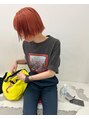 ハイトーンオレンジのぱつっとミニボブ。ダブルカラーでつくる鮮やかなオレンジはかわいいイメージなのでぱつっとミニボブを合わせました。