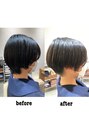 【気に入って頂いたスタイルは、ブックマークをしてご提示ください】ベースはブラントカットでシルエットを作り、質感調整で柔らかさを出しました。丸いシルエットはショートの王道です、いつの時代も人気なコンパクトショートはカットが全てです。