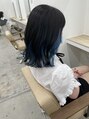 インナーブリーチ3回してある状態からブルーの色味をしっかり出るように調整をし抜け方が緑っぽくならないように少し紫を足してオンカラー