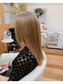 1、2回ブリーチを使用したカラーです。あえてオレンジ味を少し残したやわらかい印象のベージュカラーです。