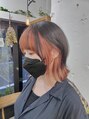 インナー全体をブリーチして存在感あるオレンジカラーを☆カジュアルだけどガーリーさも残したウルフボブ♪
