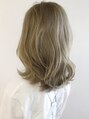 明るいベースのカラーリングにハイライトとローライトを入れて立体感を出しています。重めのヘアスタイルですが、明るさとハイライト&ローライトでいろんな表情が出るように染めています。白髪染めを辞めたいなと思っている世代の方にもおすすめです◎