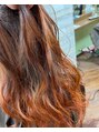 ダブルカラーオレンジのバレイヤージュです!地毛を活かしたカラーでお仕上げ。