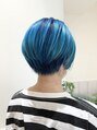 根元はブルー、毛先はシアンで塗り分けして引き締まり、コントラストのある仕上がりにしています。ブリーチ必須です。