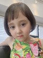 ぱっつんの前髪だと飽きてしまったお子様にオススメのアシンメトリーバング!短めのボブスタイルとの組み合わせは相性抜群です◎