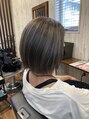 ショートボブワンブリーチカラー脱白髪染めハイライトローライト