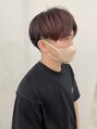 メンズのセンターパート前下がりスタイル。パツンとしたラインがクールな印象ですがカラーをレッドブラウンにすることでやわらかさも出してます♪