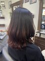 毛先のブリーチ毛を活かしつつ、根本のプリンがわかりにくいように毛先にかけてオレンジ系のブラウンになるようにグラデーションにしました。