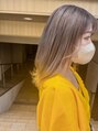 全頭ブリーチからの上はグレージュ、裾はマニキュアでイエローにしました♪