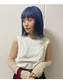 2回のケアブリーチでイエローベースまでトーンアップしました。オンカラーはネイビーとブルーの間位の少し紫みのあるクリアなブルーです。