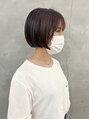 襟足ギリギリのぱつっとミニボブ。しっかりウエット仕上げにしたスタイルはナチュラルに仕上げました。