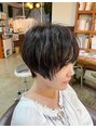 マッシュベースの耳が少し見える長さのショート。マッシュベースの顔まわり、前下がりラインのバックからサイドにかけての流れがカッコ良さと可愛さ、アレンジ幅を広げてくれるショート。サイドの内側を短く切り込むことで扱いやすさと、スッキリ感をプラス。