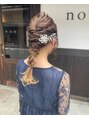 ゆるく編み込んでルーズなスタイルです!結婚式のお呼ばれでのアレンジにぴったり◎ヘアアクセサリーをつけるとより華やかになります!!