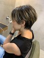 メリハリをつけたショートハイライトスタイル。ひきしめたいポイントにはハイライトは入れず、黒とハイライトのコントラストで、スタイルがひきたつカラーリング。