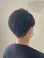 メンズのショートカットです。もみあげと襟足の刈り上げたスタイルトップは動きが出るようにカットしております。