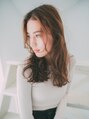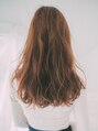 顔周りにハイレイヤーをいれた動きのあるウェーブ スタイルです。中間に動きがしっかりとでるようにリップラインくらいから広めの幅で段をいれているので、ワンカールつけるだけでしっかりと立体感がでてくれるスタイルです。