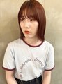 艶のあるオレンジカラーで顔色も明るく。ブリーチしなくてもベースが明るいと色味が入りやすいです◎ カットは毛先ぱつっと。顔周りを切りこんでるので、ウルフっぽくスタイリングしたり、韓国風ヘアも楽しめます!