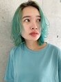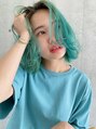 根元を空けてデザインカラーでお洒落にグリーンカラー^_^顔まわりにレイヤーを入れて動きをランダムに出しても可愛いです。