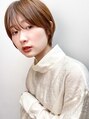 骨格に合うように丸みを残してカット。耳にかけてもかわいいまるみショートスタイルです♪カラーは表面にハイライトが入っているベースにベージュカラーで柔らかくおしゃれに見えるスタイルに!