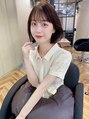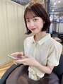 韓国レイヤータンバルボブ。毛先は厚めにカットして前髪はシースルーバングに。カラー大人グレージュベージュに。