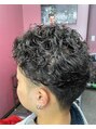 メンズのマッシュパーマスタイルです。少し強めにかけてしっかりカールでクールにかっこよく♪メンズパーマ/パーマ/メンズショート/ツーブロック/メンズマッシュ