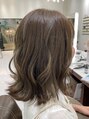 ミルクブラウン艶カラー×ふんわり外ハネミディ