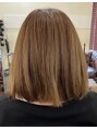 あご下の長さのボブです☆外はねに巻いた時に動きが出るよう、ケアブリーチで細かくハイライトを入れています。
