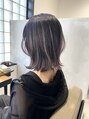 くすみグレー×パープル/切りっぱなしボブ/外国人風透明感カラー