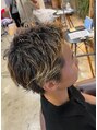 もみあげと襟足を長めに残して、スタイリングで雰囲気チェンジを楽しんで頂けるように。スッキリ感、さっぱり感もしっかり入れて扱いやすく。ジェルでスパイキーなショートヘアが新鮮です