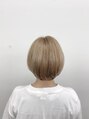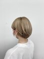 ダメージの少ないケアブリーチでオレンジ味を消して作る白っぽいまろやかなベージュカラー※髪質によってはブリーチ2回必要 プラス5610円~#耳かけショート#ミニボブ#ブリーチオンカラー#ブリーチあり#ベージュカラー#ミルキーベージュ