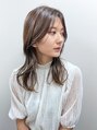 ハイライトを入れたベースにモノトーンを被せたグレージュカラーです。バングは少なめのシースルーバングにしています。