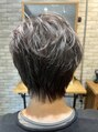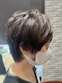 襟足タイトに後頭部ふんわり。フルレイヤーでくびれと動きを出したショートウルフ。乾かしてバームをもみ込むだけで束感◎。眼鏡もOK。