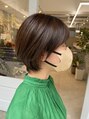 コンパクトフォルムがかわいいショートスタイル。丸みを残して女性らしさを表現しながら、毛先を薄く柔らかく作ることで切りたてから肌馴染み良くしています。カラーは透明感重視のアクアアッシュ。