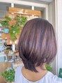 透明感と透け感を兼ね備えたヘルシーミディアムヘアーです。これから伸ばしていきたい方にもってこいです。ガツっと出ないハイライトが陰影を出してオシャレ感がグッと増しますね。オススメのスタイルです。
