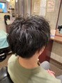回りはツーブロックでスッキリ刈り上げてソフトにツイストパーマをかけました。