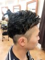 前髪を立ち上げて流す、大人メンズパーマ。太めのロッドで立ち上がりと毛流れを意識し、後ろに自然に流れるようにカット。内側を3ミリで刈り上げて清潔感UP!