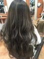 プリン風グラデーションカラーです。トップ付近は5トーンのダークアッシュに。根本塗布後に、毛先は10トーンのプラチナアッシュを被せて透明感を際立たせました。