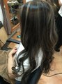 ハイトーン系グラデーション×ハイライトメッシュです。毛先のグラデーション部分とハイライトの色味をシルバーアッシュ系で統一させたやんちゃグラマーな甘辛MIXにしたのがポイントです。色落ちも楽しめて今夏おススメのスタイル!!