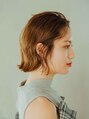 大人っぽさと可愛さの両方を兼ね備えた切りっぱなし外ハネボブ。前髪は作らないことでボブなのに重たくならず明るい印象を作ることができます。また明るいブラウンの髪色が顔まわりを明るく見せてくれるのでオススメです