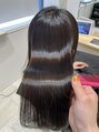 トリートメントも同時に行っていく縮毛矯正。ダメージを最小限に抑えてまとまりやすい髪へ導きます。