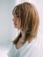 顔まわりをしっかり切り込んだミディアムウルフスタイルは、最近のトレンドになりつつあります。カラーは13レベルのゴールドベージュでトーンアップし、春夏を意識。Tシャツとデニムなどのカジュアルなファッションにもおしゃれに決まるヘアスタイルです。