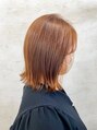 夏の代表トレンドカラー「オレンジ」夏のお洋服との相性も抜群で映えるヘアカラーです☆カットは話題の「ベルボブ」で外ハネのアレンジやUPスタイルとスタイリングのバリエーション◎