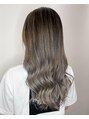 バレイヤージュグレージュカラー♪髪の毛のダメージを最小限に抑えるためにケアブリーチを使用。アディクシーカラーのシルバーとクオルシアのモノトーンで作る透明感溢れるスタイル!32ミリのコテで巻いて濡れ感を演出させたら完成☆