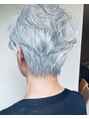 襟足をタイトにしぼり、トップにボリュームを持たせます。薄いアッシュグレイのマニキュアを使い黄味を取ったニュアンスカラーです。
